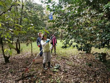 参加者が少なかったのですが、多くの椿の実を収穫できました。 収穫した椿の実は、12月に実施する「椿油の抽出」活動に参加できる参加者が手分けして持ち帰りました。事前に椿の実は天日で乾かし種をとり、汚れているものは洗浄します。