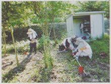 休みなく伸びる草、同じ生き物なのに、と思いつつ草刈り機の安全点検と準備をしている。 / DiscoverWalk-赤木遊歩道で自然と人とのつながりや、文化を探そう-公募行事に参加した方々と。