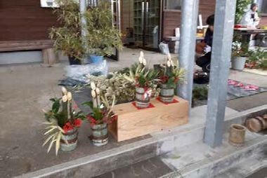 飾りも松や梅、千両や茗荷の実などなどいろいろと用意されていて、皆さん楽しそうに飾りつけをされていました。